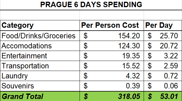By sharing our stories and by showing exactly how much some of these experiences actually cost, we hope we can help someone out there take the steps to accomplish their travel goals. See below to check out exactly how much it cost us during 6 days in Prague as backpackers on a budget.